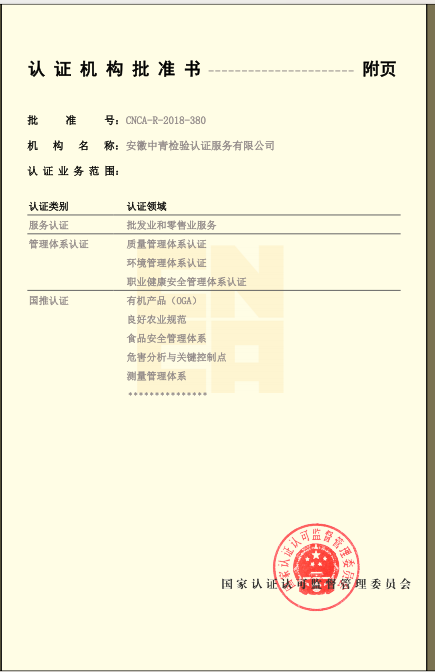 安徽省“食安安徽”品牌認證:評價是根據(jù)國際通行的合格評定方式,依據(jù)“食安安徽”品牌認證評價標準及相關規(guī)定,對申請“食安安徽”認證評價的食品生產(chǎn)經(jīng)營者和特定區(qū)域進行的第三方認證評價活動。“食安安徽”品牌認證評價標準包括企業(yè)認證和區(qū)域評價兩大類,企業(yè)認證對象包括食用農產(chǎn)品生產(chǎn)者、食品生產(chǎn)企業(yè)、食品流通企業(yè)、餐飲服務企業(yè),區(qū)域評價對象包括食品生產(chǎn)基地、食品生產(chǎn)園區(qū)、餐飲安全街區(qū)、食品安全小鎮(zhèn)、安徽省食品安全示范縣(市、區(qū))。